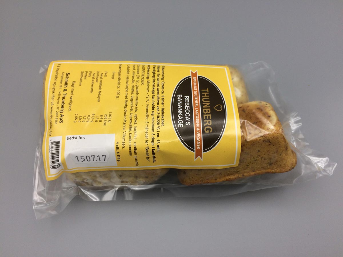 Rebecca’s er en glutefri banankage, som tilmed er laktosefri og vegansk. Den er “bake off”, det vil sige at den opbevares på frost indtil den skal bruges, og skal så bages i din ovn, så du har en helt ny friskbagt Banankage, når det passer dig.